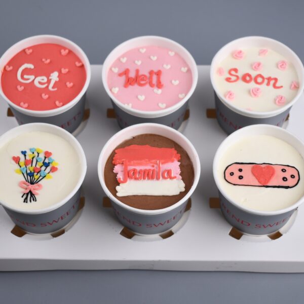 6 soft and delicious cupcakes decorated with a thoughtful “Get Well Soon” theme — a sweet way to brighten someone’s day and lift their spirits.