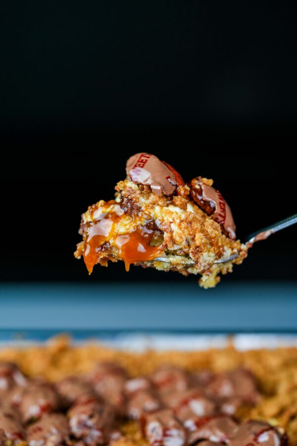 . A perfect blend of soft cake and caramelized pecans, gently heated over candles to enhance its rich taste and aroma.