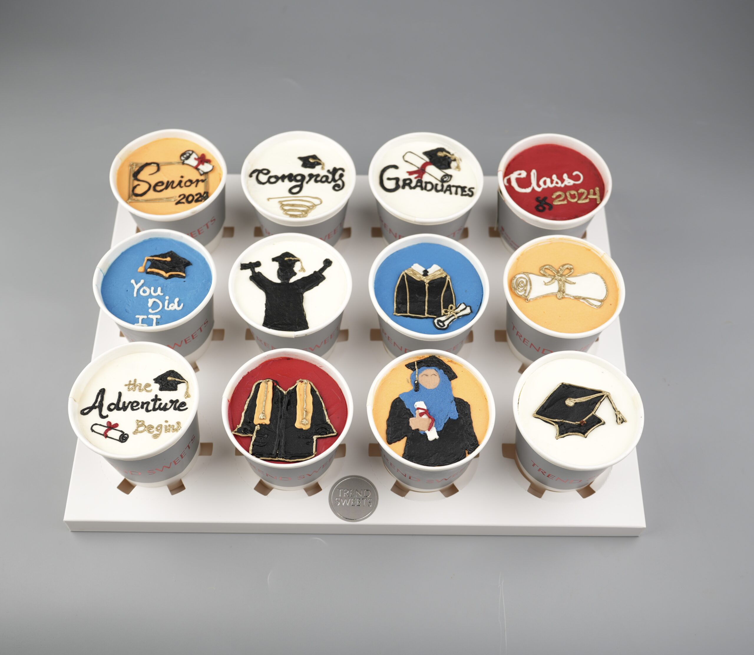 12cake in cups with graduation theme