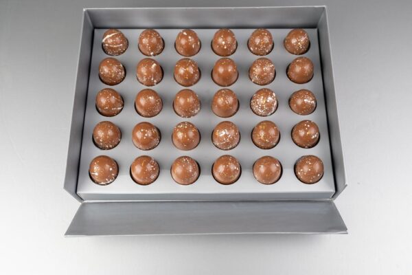30 pieces of our signature Trend chocolate filled with a crunchy pistachio kunafa mix — a luxurious bite combining rich chocolate, nutty flavor, and crispy texture.