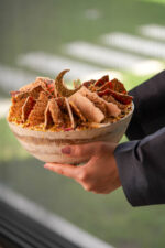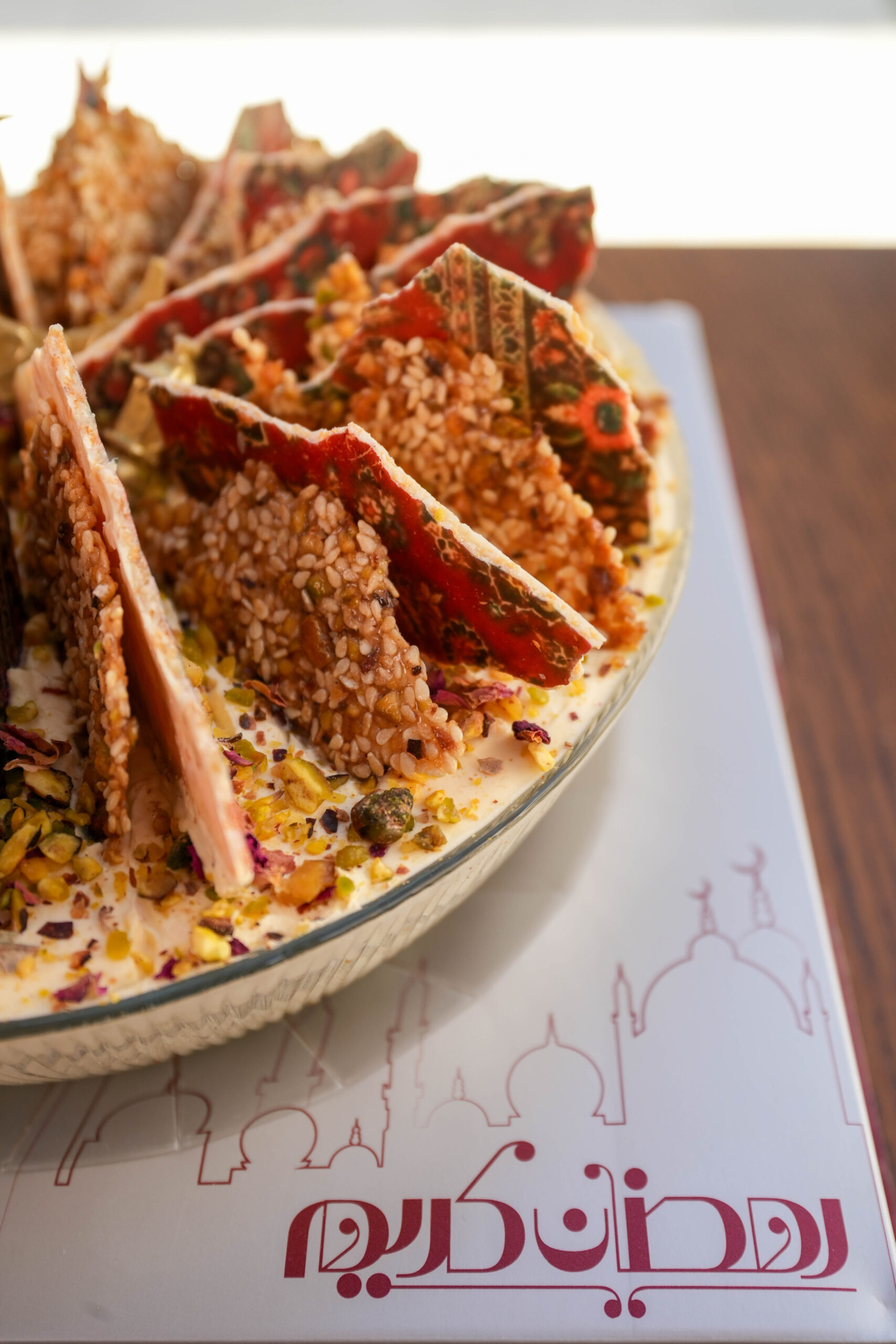 A layers of zaffron cake ,silky mango cream ,and frish of mango slice , crowned with caramelized sesame , luxurious treat with an irresistibe twist.